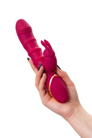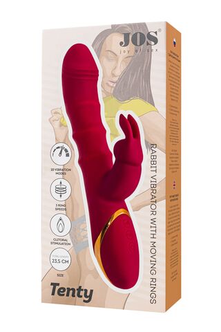 Tenty от Jos — это твой билет в мир чувственных удовольствий и фантазий, где каждый момент наполнен страстью и удивительными ощущениями. Этот виброкролик с двигающимися кольцами создан для тех, кто готов исследовать новые горизонты наслаждения. Классическая форма вибратора идеально подходит для двойной стимуляции, мягко и интенсивно воздействуя на точку G и клитор одновременно. Ты почувствуешь, как твои желания пробуждаются с каждым движением. Фишка Tenty — это подвижные упругие кольца на стволе, которые совершают восхитительные фрикции вверх и вниз, заставляя тебя трепетать от удовольствия. А клиторальный стимулятор в форме забавного кролика со своими нежными ушками нежно касается самых чувствительных точек, выводя оргазмы на совершенно новый уровень. 10 режимов вибрации и 3 скорости движения колец позволяют настроить игрушку под любое твое настроение — от легкой ласки до мощного феерического финала. Изящный, роскошный дизайн с золотыми вставками делает Tenty не просто вибратором, а настоящим аксессуаром для твоих самых интимных моментов. Бархатистый силикон приятно ощущается на коже, а компактные размеры делают использование максимально удобным и приятным. Рабочая длина - 13 см.
