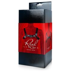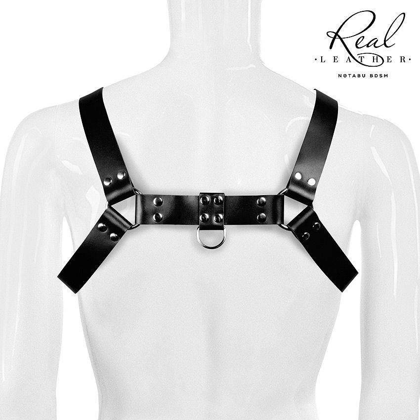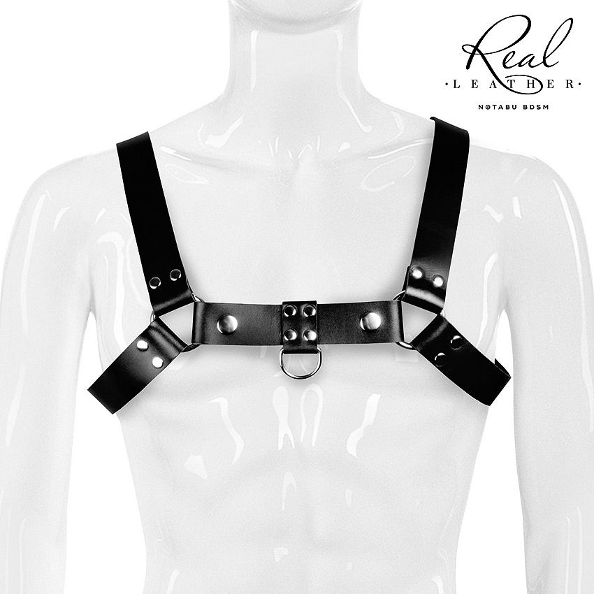 Брутальная портупея-сбруя для разнообразных БДСМ-практик. Она поможет создать смелый образ мужчины, готового к откровенным экспериментам. Интимный аксессуар придаст чувственности и сексуальности. Может стать отличным аксессуаром для тематической вечеринки. Особенно сексуально сбруя смотрится на обнажённом теле. Портупея надевается на верхнюю часть тела. Фиксируется застёжкой. Комбинация из ремешков усилена мощными заклёпками и большими уплотнительными кольцами. На груди и спине изделие имеет металлические кольца, позволяющие пристёгивать, привязывать мужчину или цеплять различные БДСМ-аксессуары. Мягкая внутренняя поверхность сбруи препятствует натиранию кожи.