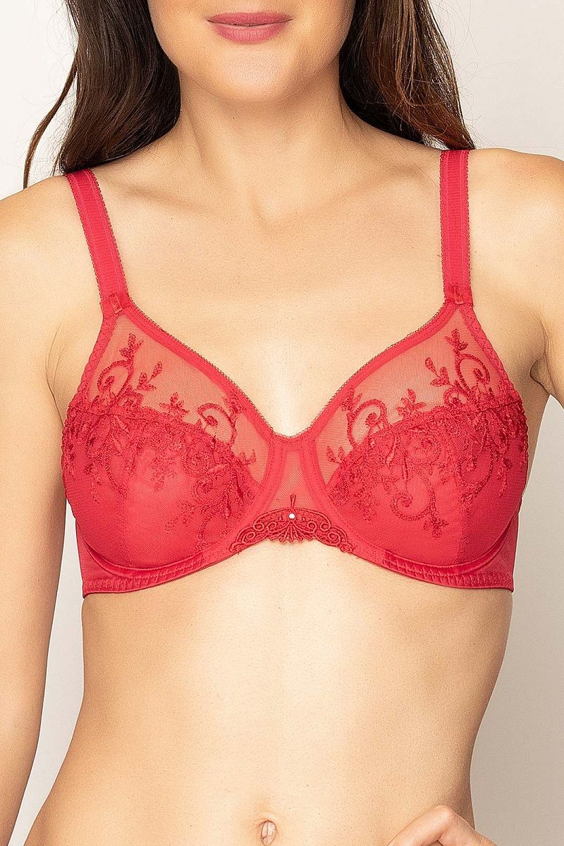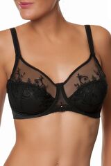 Новый вид бюстгальтера с классическими мягкими чашками на каркасах, с отличным кроем из 3-х частей, который также высоко облегает и поддерживает грудь, вплоть до чашки H. Высокий эстетический результат достигается за счет сочетания изысканной вышивки и великолепного тюля, обеспечивающего визуальную легкость и чистоту линий. Чашки бюстгальтера снабжены подкладкой из прочного материала — залога непрозрачности и поддержки. Визуально яркие чашки с вышивкой гармонично сочетаются со строгими, но стильными бретелями и центральной частью из двойного слоя тюля.