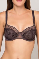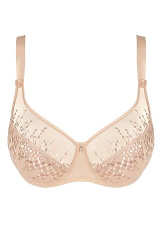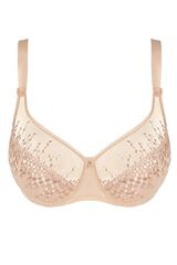 Бюстгальтер-балконет с мягкими чашками на каркасах. Вышитый узор фиксирован. Он располагается на одном и том же месте в каждой модели, тем самым создавая непрозрачный участок в центре чашки и прозрачную линию декольте. Нижняя часть чашек снабжена подкладкой из тюля, обеспечивающая отличную поддержку. Вырез декольте и бретели украшены великолепным атласом, придавая модели утонченность, лаконичность и актуальность.