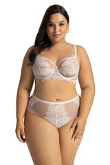 Бюстгальтер 2152 M Bliss выполнен на основе бюста 1396 в цвете creamy biscuit на косточках, чашки шитые из двух слоев нежного тюля цвета капучино, а нежное кружево с кокетливыми ресничками создает иллюзию чувственной глазури. Пояс из стабилизирующей сетки цвета капучино. Бретельки не отстёгиваются, регулируются по длине, на спине застёжка - удлинитель на 2 или 3 крючках, фурнитура металлическая цвета меди. У бюстгальтеров/купальных лифов AVA довольно тугой пояс, который адаптируется под тело после нескольких дней носки или одной-двух стирок. Рекомендуем использовать удлинитель пояса бюстгальтера на первое время либо выбирать следующий за «своим» размер, с поясом длиннее.