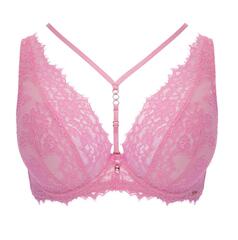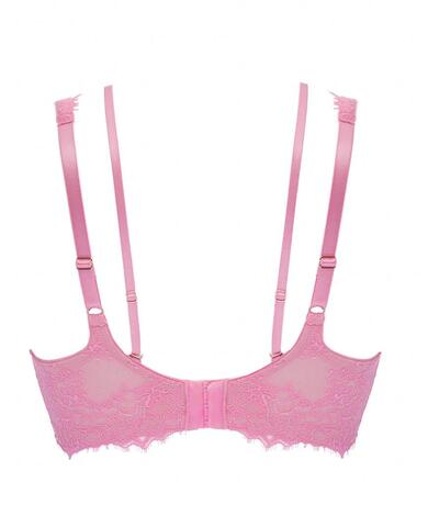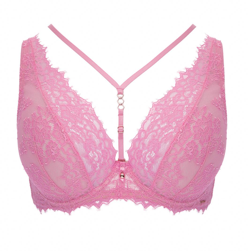 Бюстгальтер-бралетт French Kiss выполнен на основе бюста Marie M Bralette, с мягкими чашечками на косточках, чашки шитые из кружева, продублированы сеткой. Бретельки регулируются по длине, не отстёгиваются. На спине застёжка на удлинитель, количество крючков в ряду застёжки увеличивается пропорционально размеру бюстгальтера, фурнитура металлическая цвета розового золота. В зоне декольте дополнительные съемные тонкие бретели, регулируемые по длине.