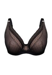 Бюстгальтер Renee M бралетт выполнен на косточках, чашки мягкие, шитые из сетки с геометрическим рисунком, продублированы телесной сеткой. Пояс из микрофибры продублирован сеткой. Бретельки пришиты, регулируются по длине. На спине застёжка на удлинитель, фурнитура металлическая цвета меди.