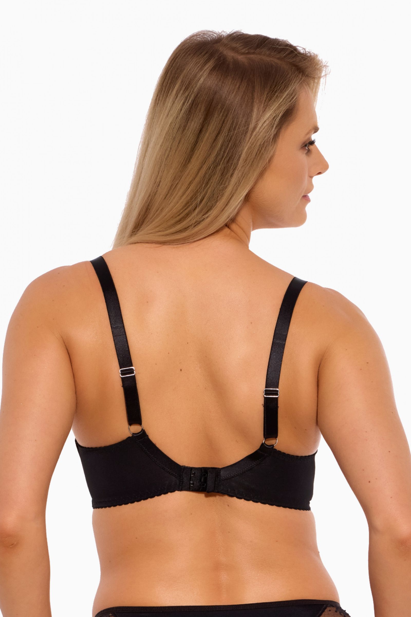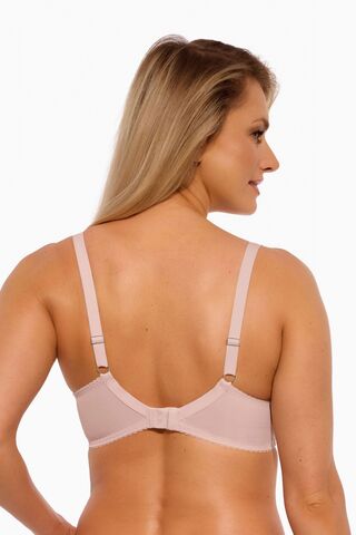 Бюстгальтер Camilla M выполнен на косточках, с дополнительными боковыми поддержками, чашки мягкие, шитые из тонкой сетки и кружевного полотна, с боковым подкроем, спинка из стабилизирующей сетки. Бретельки на плечах с мягким тонким поролоном, не отстёгиваются, регулируются по длине, на спине застёжка - удлинитель на крючках, фурнитура металлическая.