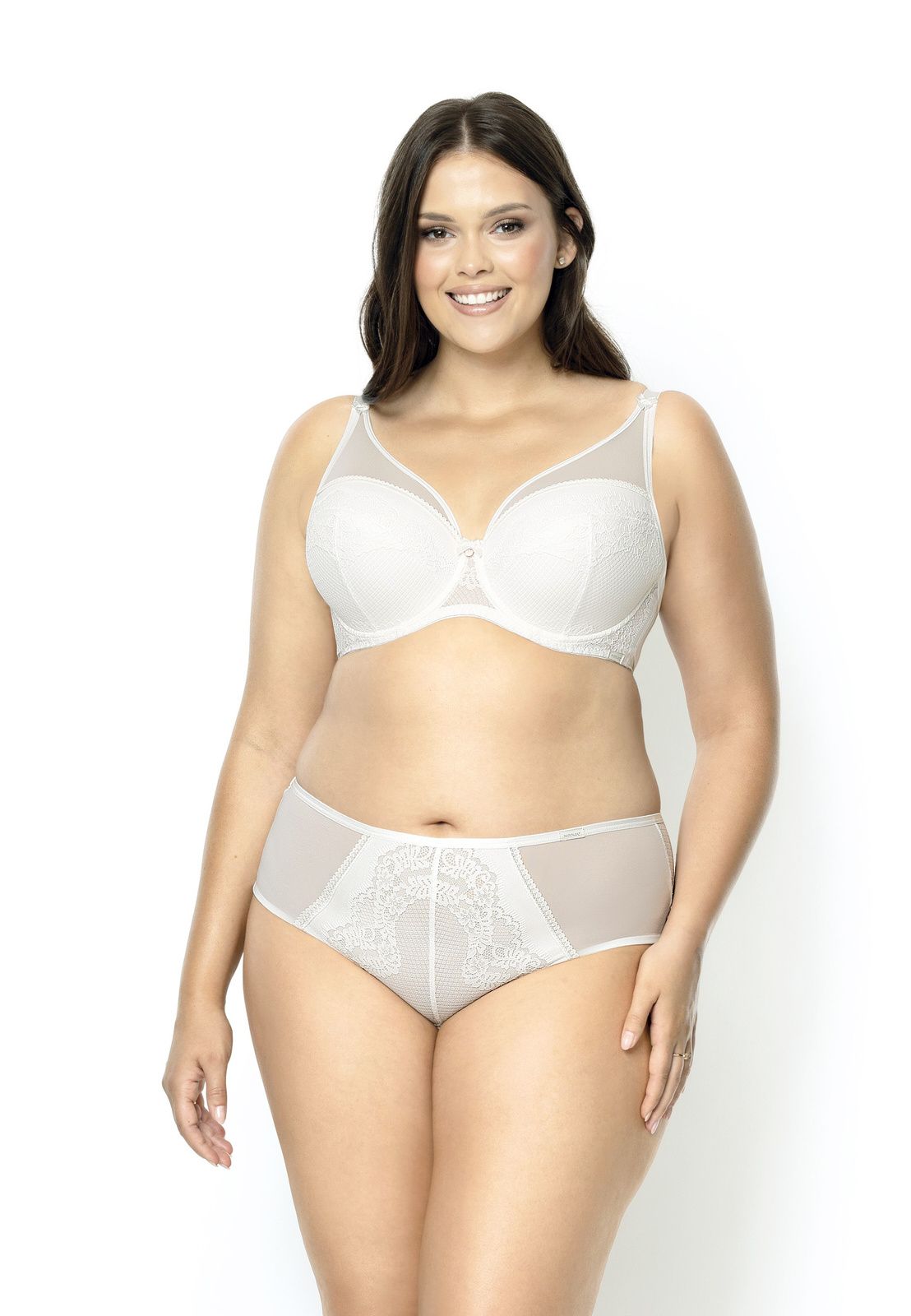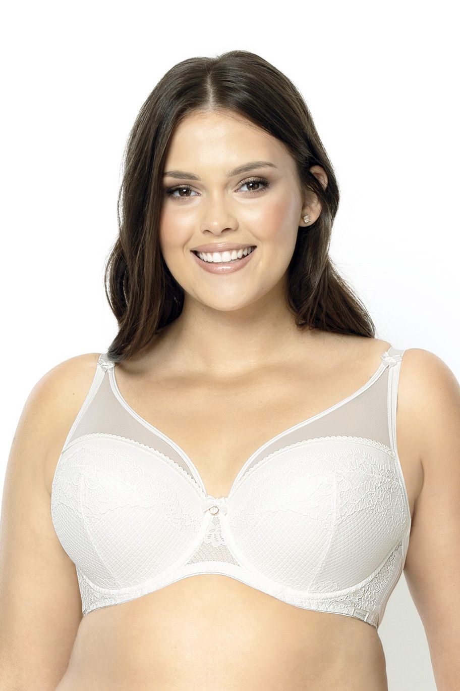 Бюстгальтер Casilda U на косточках, чашки шитые, на тонком поролоне, со съёмными пуш-ап вкладышами, внутренняя сторона проложена хлопковым трикотажем, внешняя сторона кружевная, верхняя часть чашки из сетки. Бретельки не отстёгиваются, регулируются по длине. На спине застёжка на удлинитель, количество крючков в ряду застёжки, увеличивается пропорционально размеру бюстгальтера.