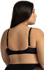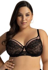 Бюстгальтер 2145 PU Harmony выполнен на косточках, чашки шитые, нижняя часть на тонком поролоне телесного цвета, внутри проложена хлопковым трикотажем, верхняя часть чашки из телесной сетки, внешняя сторона чашек из черного кружева. Бретельки не отстёгиваются, регулируются по длине, фурнитура цвета желтого золота, пояс из эластичного сетчатого полотна. На спине застёжка на удлинитель, количество крючков в ряду застёжки увеличивается пропорционально размеру бюстгальтера от 2 до 3. У бюстгальтеров/купальных лифов AVA довольно тугой пояс, который адаптируется под тело после нескольких дней носки или одной-двух стирок. Рекомендуем использовать удлинитель пояса бюстгальтера на первое время либо выбирать следующий за «своим» размер, с поясом длиннее.