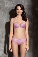 Очаровательная модель из эластичного гладкого полотна. Уплотненные чашечки на косточках отлично поддержат и слегка приподнимут Вашу грудь, придав ей красивую форму и подчеркнув ее естественный объем. Чашечки, а также низ модели декорированы вставками из эластичного кружева тон в тон с основным цветом изделия. Между чашечек расположился красивый бантик с золотой подвеской. Тонкие бретельки регулируются по длине.