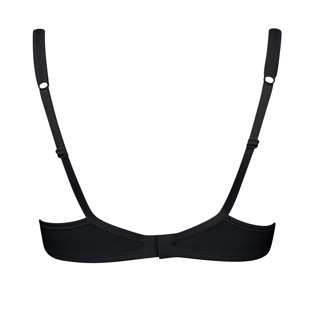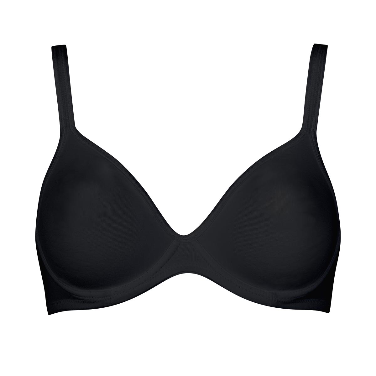 Бюстгальтер из эластичного хлопкового полотна с мягкими молдированными чашками на каркасах. Чашки 2-хслойные, что делает их непрозрачными и незаметными под одеждой. Отделка линии декольте эластичной тесьмой обеспечивает полный охват груди и дает дополнительную поддержку. Бретели регулируются сзади.