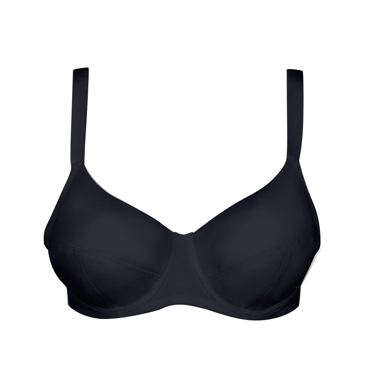Бюстгальтер из микрофибры с мягкими 3-х секционными чашками, на каркасах. Нижняя часть чашки на уплотненном хлопковом дубляже, для усиления поддержки. Верхняя часть двухслойная, из шелковистой микрофибры, с внутренним эластичным швом по линии декольте. Боковые однослойные панели. Расширенные бретели регулируются на спине.