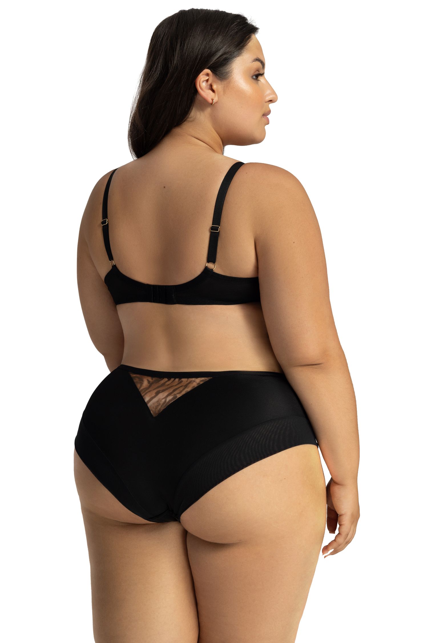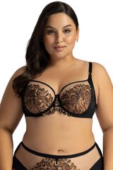 Бюстгальтер 2144 M Liana выполнен на основе модели 1130 на косточках, чашки шитые из телесной сетки и сетки с хищным принтом и вышивкой бежево-золотой нитью, с боковым подкроем из черной неэластичной ткани. Бретельки не отстёгиваются, регулируются по длине, фурнитура цвета желтого золота, пояс из эластичного сетчатого полотна. На спине застёжка на удлинитель, количество крючков в ряду застёжки увеличивается пропорционально размеру бюстгальтера от 2 до 3. У бюстгальтеров/купальных лифов AVA довольно тугой пояс, который адаптируется под тело после нескольких дней носки или одной-двух стирок. Рекомендуем использовать удлинитель пояса бюстгальтера на первое время либо выбирать следующий за «своим» размер, с поясом длиннее.