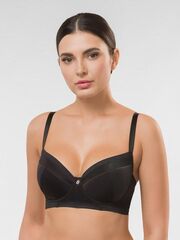 Бюстгальтер полупоролоновый на каркасах. Верх чашки выполнен из эффектной полупрозрачной сетки, которая полностью прилегает к груди и подчеркивает ее форму. Глубокая чашка собирает и поддерживает грудь, придавая ей пышный вид. Дополнительный вертикальный шов по нижней чашке придает дополнительную фиксацию груди.