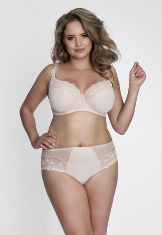 Бюстгальтер на косточках, с боковыми поддержками, чашки шитые, форма цветка с сайс апортом, из микрофибры, верхняя часть из кружева. Бретельки пришиты, регулируются по длине, на спине застёжка - удлинитель на крючках.