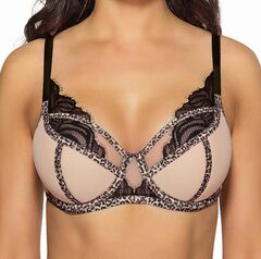 Бюстгальтер на косточках с отделкой кружевом и леопардовым кантом