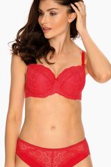 Бюстгальтер на косточках, с двойными подвижными боковыми косточками, чашки шитые, нижняя часть на тонком поролоне, внутренняя сторона прошита хлопковым трикотажем, внешняя сторона и верхняя часть кружевные. Бретельки не отстёгиваются, регулируются по длине, на спине застёжка - удлинитель на крючках, фурнитура металлическая крашеная.