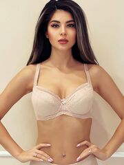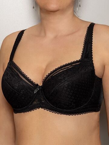Бюстгальтер на поролоне. Выполнен из эластичного кружева. Стан бюстгальтера выполнен из упругого полотна soft. Нижние детали чашки на дубляже с хлопком. На стане бюстгальтера боковые корректирующие пластины, позволяющие прилегать к телу и не скручиваться.