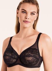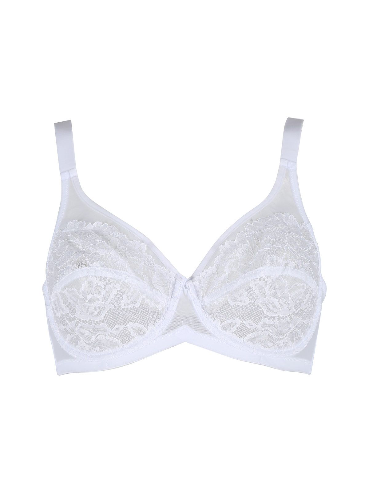 Бралетт с мягкой кружевной чашкой на косточках, выполнен из микрофибры, кружева и сетки.