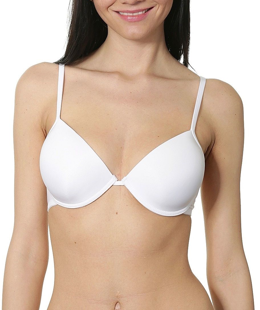 Бюстгальтер пуш-ап из микрофибры со встроенным гелевым корректором, на каркасах. Узкое соединение чашек создает глубокое декольте. Однослойные боковые панели. Тонкие бретели регулируются на спинке.