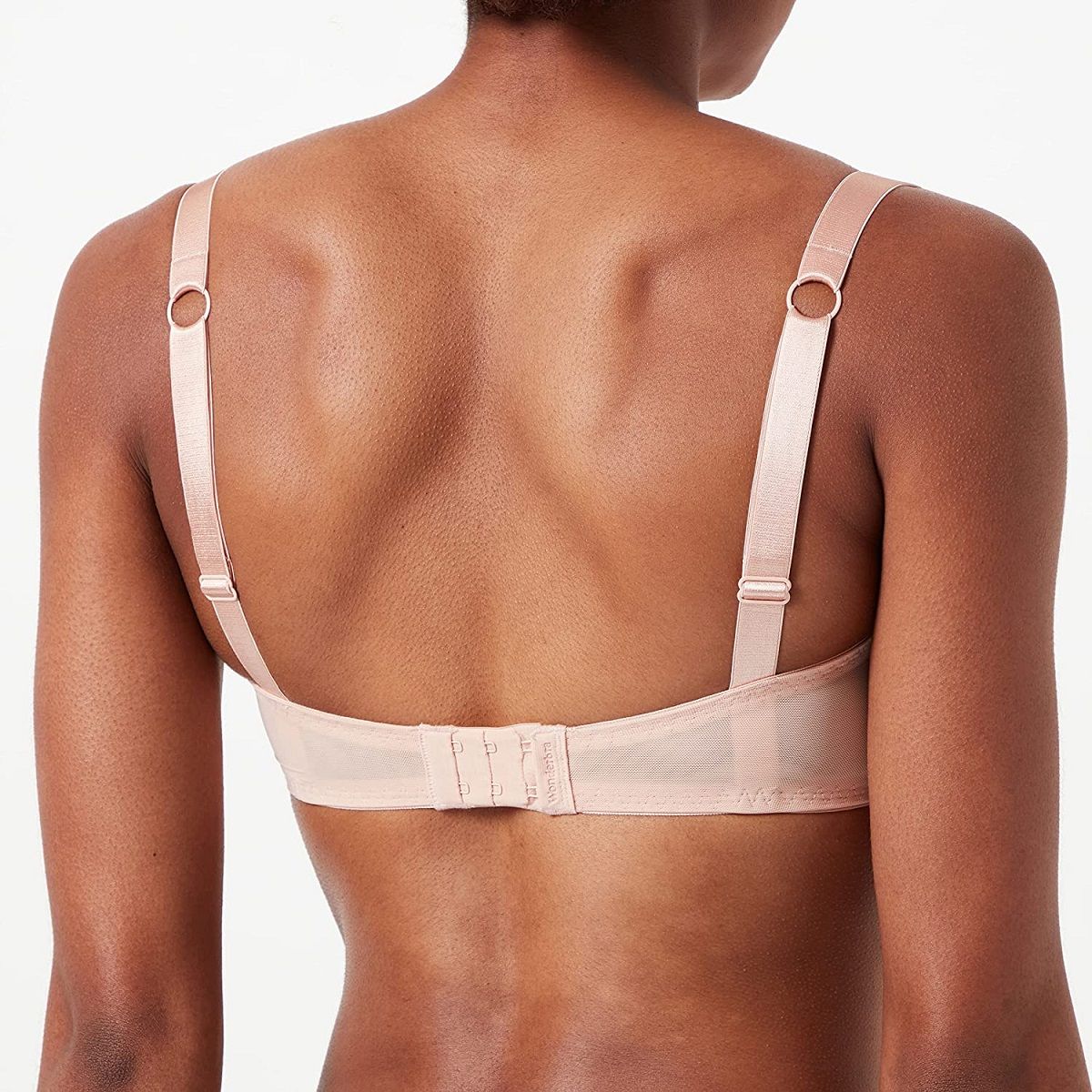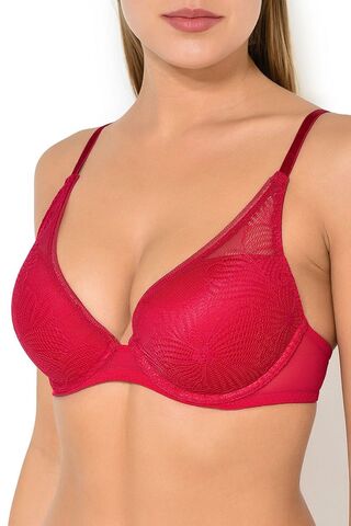 Украсьте свое декольте бюстгальтером Padded Triangle Bra с треугольными чашками! Классическая конструкция с гладкими формованными чашками декорирована треугольными кружевными полупрозрачными вставками, плавно переходящими в тонкие бретели. Бретели регулируются сзади. Застежка на два крючка.