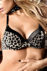 Раскройте свою дикую сторону страсти. Роскошный бюстгальтер из блестящего сатина с темпераментным леопардовым узором и черными элементами, эффективный раскрой которого придает декольте опасную чувственность декольте. Бретельки съемные и очень удобны в ношении.
