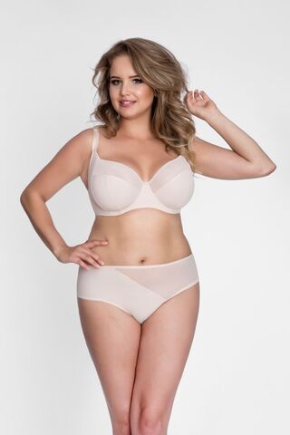 Бюстгальтер на косточках, с боковым подкроем, с боковыми поддержками, чашки шитые, форма цветка с сайс апортом, из микрофибры, верхняя часть из двойной сетки. Бретельки пришиты, регулируются по длине, на спине застёжка - удлинитель на крючках.