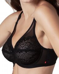 Бралетт с мягкой кружевной чашкой на косточках, выполнен из микрофибры, кружева и сетки.