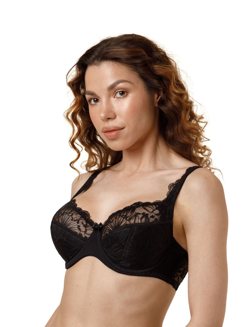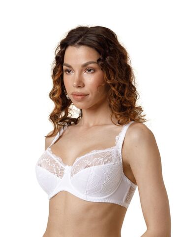 Бюстгальтер полудублированный. Чашка из эластичного кружева. Внутренняя часть стана и передняя часть чашки на подкладке из 100% хлопка. В больших размерах боковые детали усилены сетчатой подкладкой. Верхняя часть бретели и боковая часть стана из эластичного кружева, боковые пластины надежно фиксируют стан.