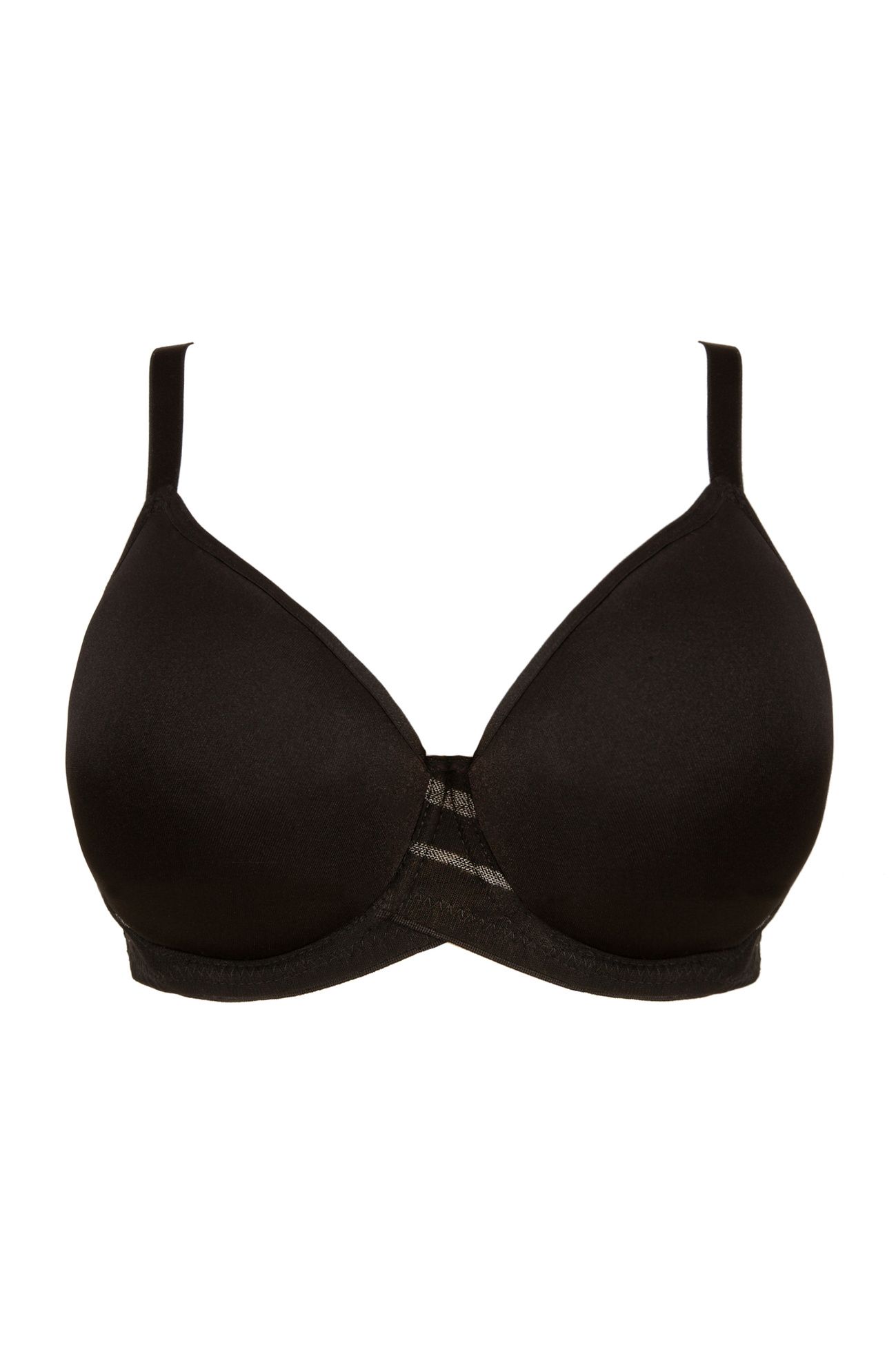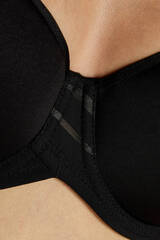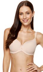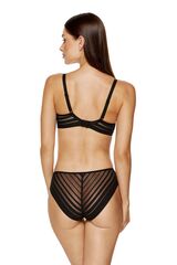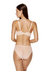 Бюстгальтер Luna с формованными поролоновыми чашками типа spacer на косточках, с дополнительными боковыми поддержками, внешняя сторона чашек гладкая. Спинка из сетки в полоску, продублирована стабилизирующей сеткой. Бретельки пришиты, регулируются по длине. На спине застёжка на удлинитель, количество крючков в ряду застёжки увеличивается пропорционально размеру бюстгальтера. Фурнитура металлическая крашеная.