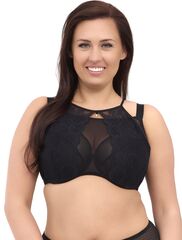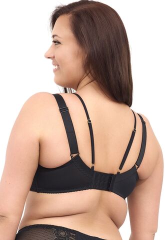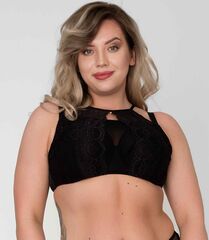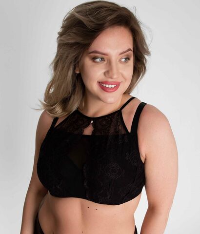 Бюстгальтер-топ выполнен с мягкими чашками на косточках, с дополнительными боковыми поддержками. Эластичная сетка в виде топа пришита к лифу, хорошо подчеркивает форму груди. Завершает идеальный образ внешний топ из широких полос эластичного кружева на тонких, регулируемых по длине, бретелях, зона декольте украшен подвеской с кристаллом. Спинка из стабилизирующей сетки, Бретельки регулируются по длине, не отстёгиваются, на спине застежка-удлинитель, фурнитура металлическая крашеная.