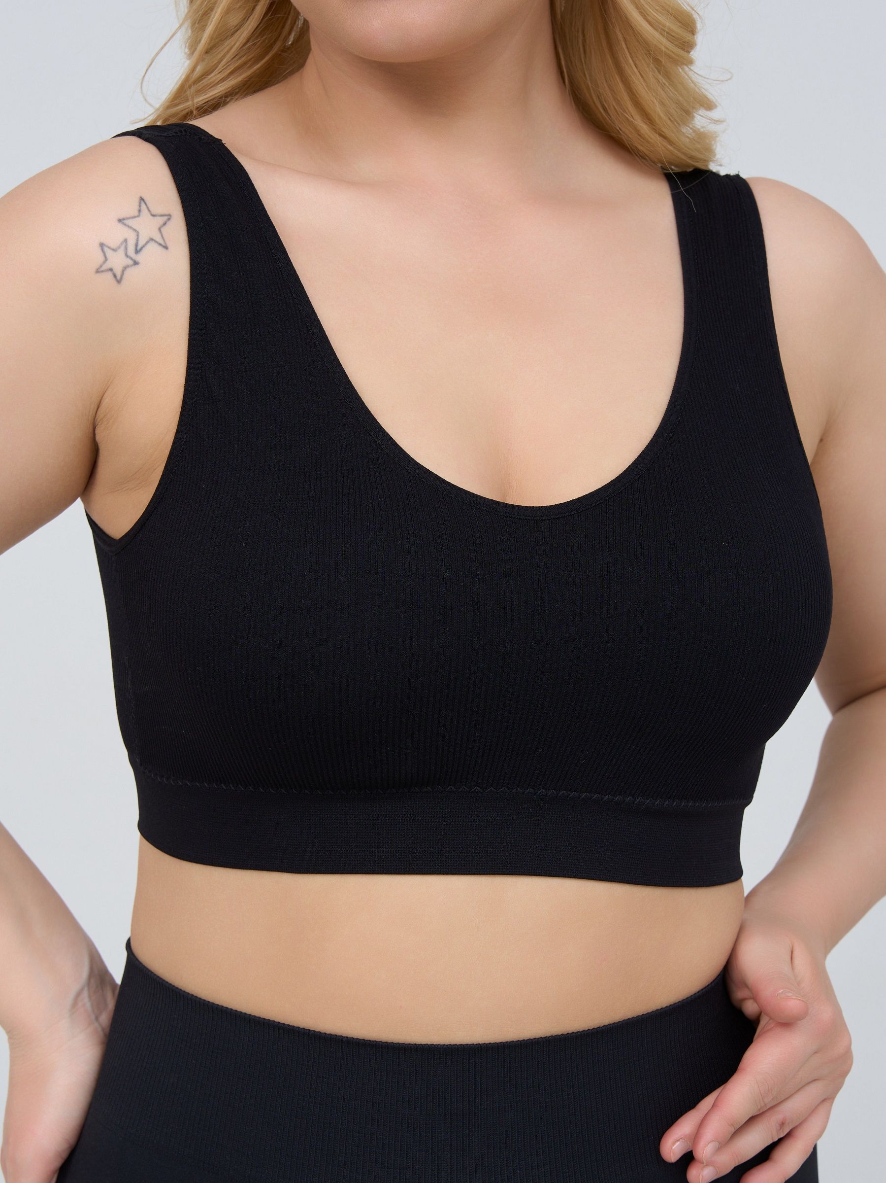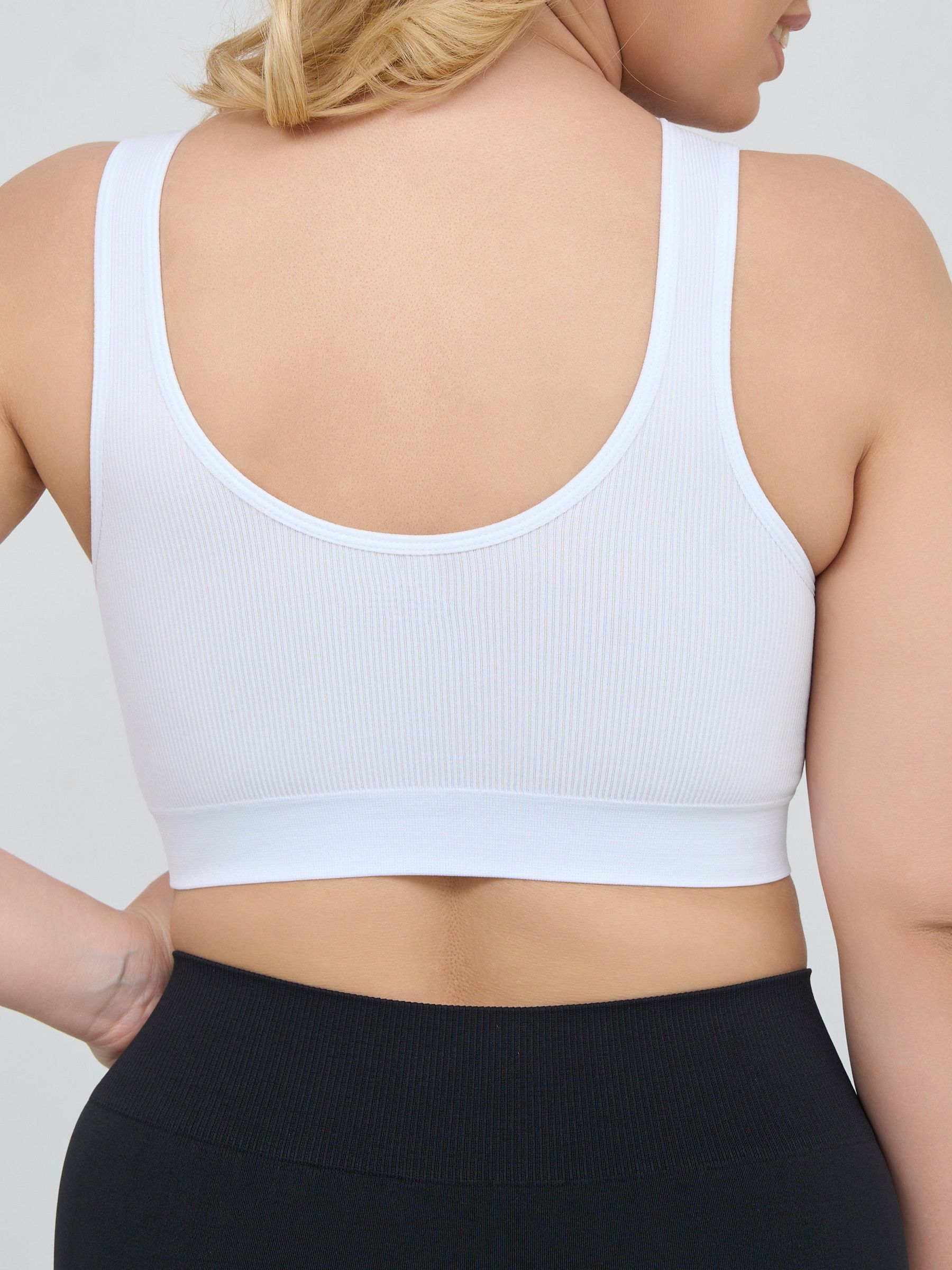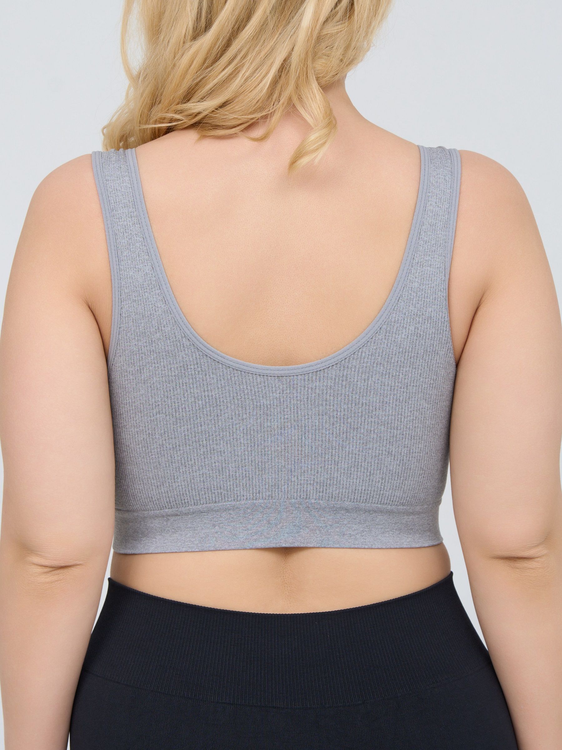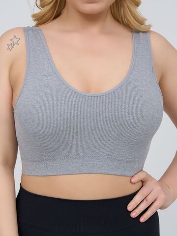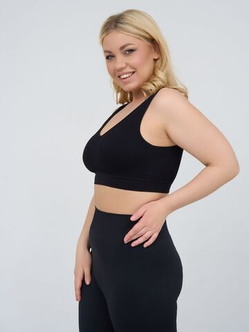 Бюстгальтер-топ в мелкий рубчик, со скрытым (внутренним) подкроем для комфортного удержания груди, широкие бретели, формованные вставки вынимаются, очень комфортный, микрофибра, V-образный вырез делает фигуру зрительно стройнее.