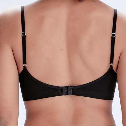 Эко-бюстгальтер-бралетт в мелкий рубчик на регулируемых бретелях, с дополнительным подкроем для поддержки груди, классической застежкой в три ряда, комфортный, гипоаллергенный, бесшовный, изготовлен из нитей, которые полностью разлагаются в почве в течение 3-х лет после использования, новые технологии производства.
