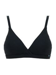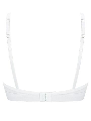Бюстгальтер-триангул с мягкими двухслойными чашками, без косточек. Съемные формованные вкладыши без пуш-ап. Бретели несъемные, регулируемые. Застежка в два ряда на три позиции.