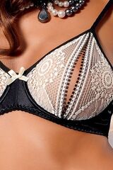 Располагаясь на чашечках лифа, они приоткрывают волнующие кровь холмы. Поясок из эластичного сатина и очаровательные ажурные трусики-стринг завершают образ соблазнительницы. В комплекте: бюстгальтер, пояс, трусики-стринги.