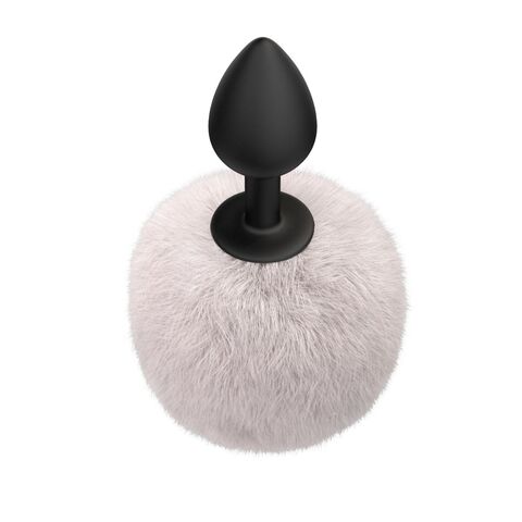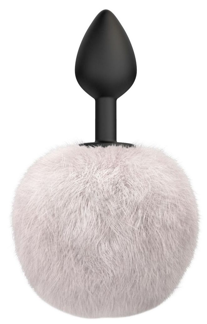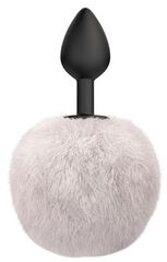 Черная анальная пробка с белым пушистым хвостиком Fluffy