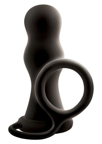 Черная анальная пробка с эрекционным кольцом Renegade Pop & Lock Rambo
