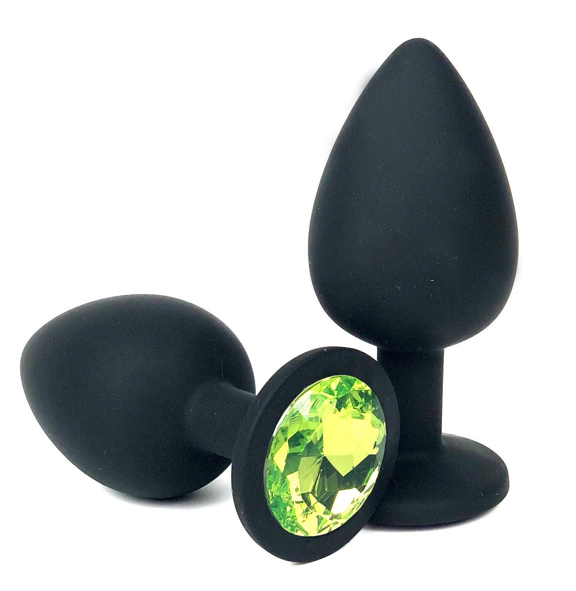 Черная анальная пробка с лаймовым стразом - 8 см.