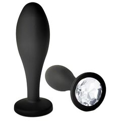 Черная анальная пробка с прозрачным кристаллом - 11 см.