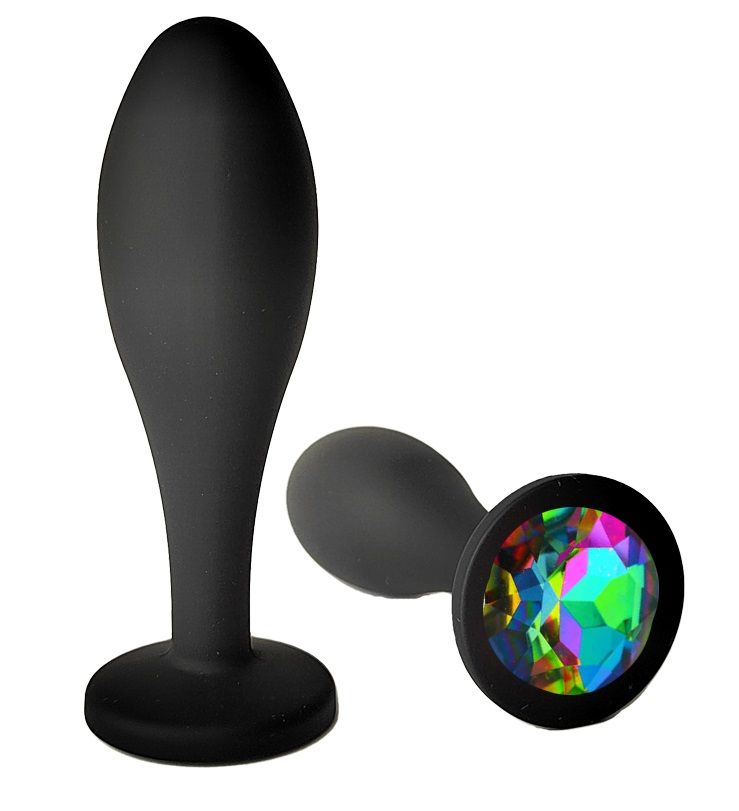 Черная анальная пробка с радужным кристаллом - 11 см.