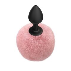 Черная анальная пробка с розовым пушистым хвостиком Fluffy