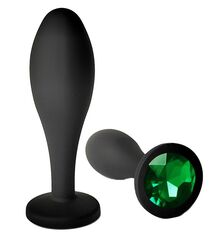 Черная анальная пробка с зеленым кристаллом - 7,7 см.