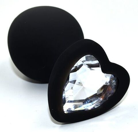 Черная анальная силиконовая пробка с прозрачным кристаллом в форме сердца - 8,8 см.