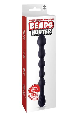 Черная анальная цепочка Hunter Beads. Выполнена из приятного на ощупь силикона.