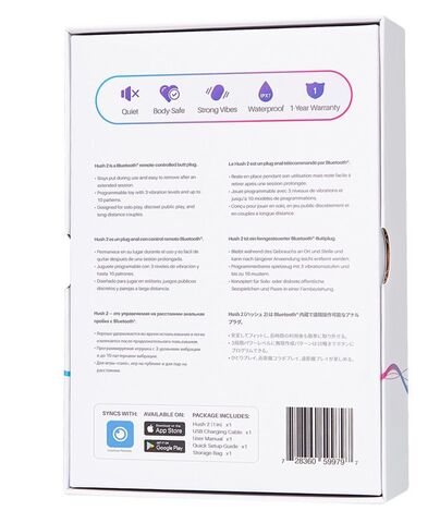 Lovense Hush 2 — это управляемая на расстоянии анальная пробка с Bluetooth. Размер S идеально подойдет для тех, кто хочет сделать шаг вперед в мире анальных удовольствий. Супергладкое и бесшовное покрытие из медицинского силикона идеально подходит для длительного ношения до четырех часов. Шелковистый материал и плавная форма обеспечивают комфортное введение. Узкая ножка и широкий ограничитель гарантируют безопасность использования. Водонепроницаемая игрушка Lovense Hush 2 обладает мощным мотором и глубокой низкочастотной вибрацией. Сильные и приятные вибрации помогают достичь небывалого наслаждения как в соло игре, так и в прелюдии с партнером. В вашем распоряжении три уровня мощности и четыре предустановленных режима вибрации, управляемых кнопками в основании девайса. Кроме того, игровые возможности не ограничены с приложением Lovense Remote. Установить на смартфон и использовать игрушку дистанционно легко, даже находясь на расстоянии с партнером. Варианты создания собственных ритмов вибрации, реагирующих на музыкальный плейлист или голос — все это доступно с инновационной технологией управления по Bluetooth Lovense. Настраивайте уровни мощности вибрации по своему вкусу и сохраняйте их для дальнейшего использования. Также запрограммируйте до 10 любимых паттернов и обеспечьте себе сверхсильные оргазмы! Рекомендуется использовать со смазкой на водной основе. Высококачественный медицинский силикон. Время работы - до 240 минут. Время зарядки 60 минут. Магнитная USB зарядка. Водонепроницаемость IPX7.