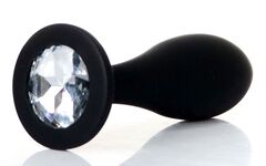 Черная анальная втулка с прозрачным кристаллом - 9,2 см.