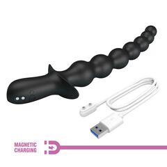 Черная анальная ёлочка с мощной вибрацией Rigdon. 7 бусин разного диаметра. Минимальный диаметр - 1,8 см.
