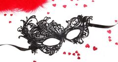 Создайте таинственный образ, где вы будете играть роль неприступной, но очень яркой обольстительницы. Ажурная маска на глаза не скроет ваш взгляд, но придаст образу особого шарма.