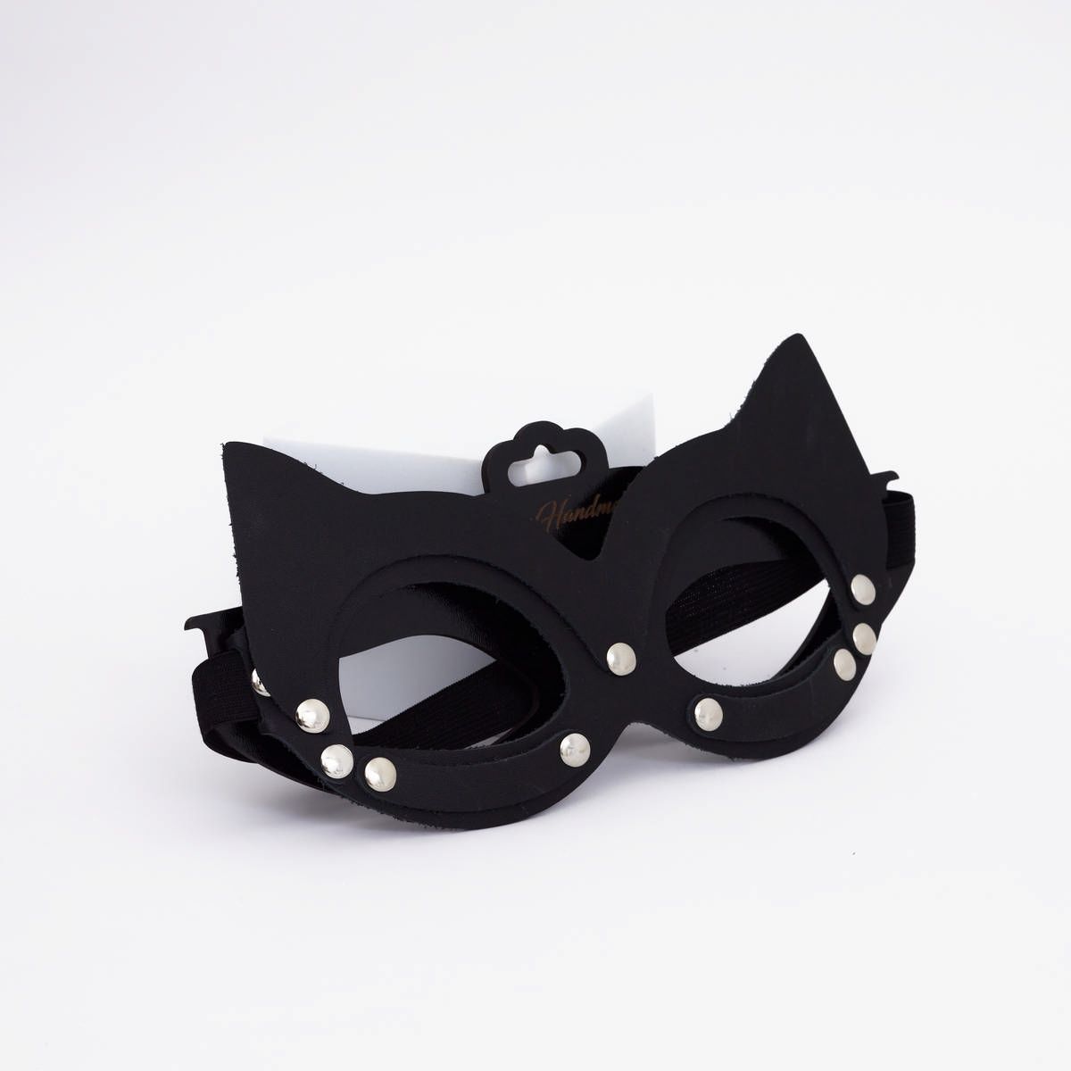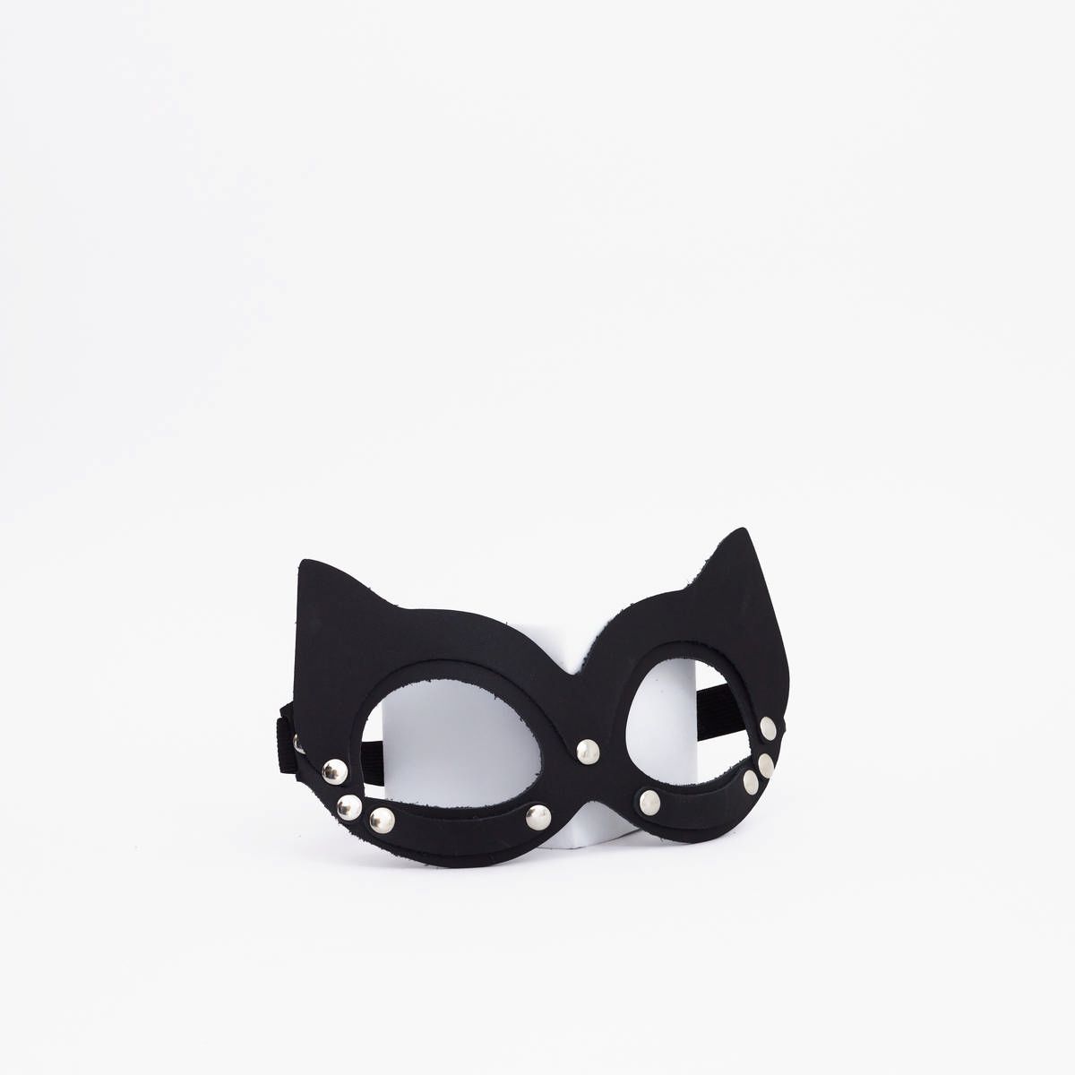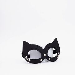 Маска выполнена из натуральной кожи и состоит из нескольких отдельных частей, которые составляют единое целое благодаря хорошо продуманному дизайну. Её форма вдохновлена образом загадочной кошки, что добавляет образу игривости, элегантности и харизмы. Благодаря продуманной конструкции маска прекрасно сидит на голове, не вызывая дискомфорта, и задает настроение всему образу.