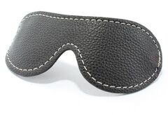 Маска выполнена из натуральной черной кожи высокого качества, декорирована белой строчкой по краю всего изделия. Обратная сторона маски выполнена из нежной перчаточной кожи, что делает использование комфортным. Комфортный аксессуар поможет сделать БДСМ игру яркой и насыщенной. Благодаря эластичной резинке размер универсальный. Ширина резинки - 2 см.