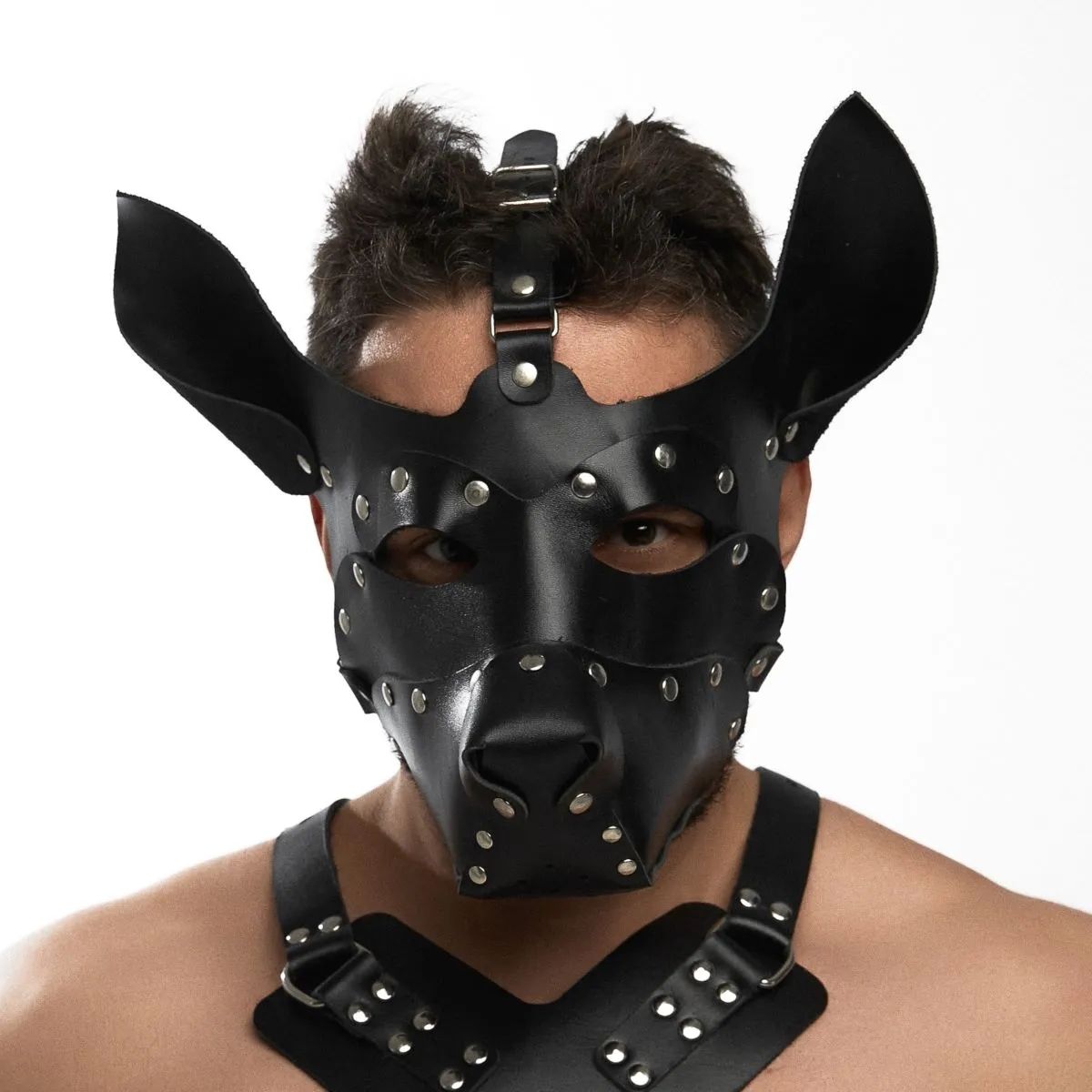 Черная кожаная маска «Собака».