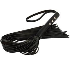Плеть полностью изготовлена из натуральной кожи черного цвета. Для удобного использования на торце ручки имеется ремешок. Длина ручки – 17 см.
