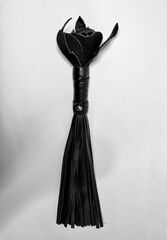 Восхитительная мини-плеть, украшенная чёрной розой. Цветок, рукоятка и хвосты плети полностью выполнены из натуральной мягкой кожи. Размеры этой плети очень изящны, поэтому данную плеть можно использовать, как генитальную, чтобы добавить новых ярких ощущений. Розочка очень удобно лежит в руке и создает неповторимую атмосферу и настроение, этот аксессуар никого не оставит равнодушным!